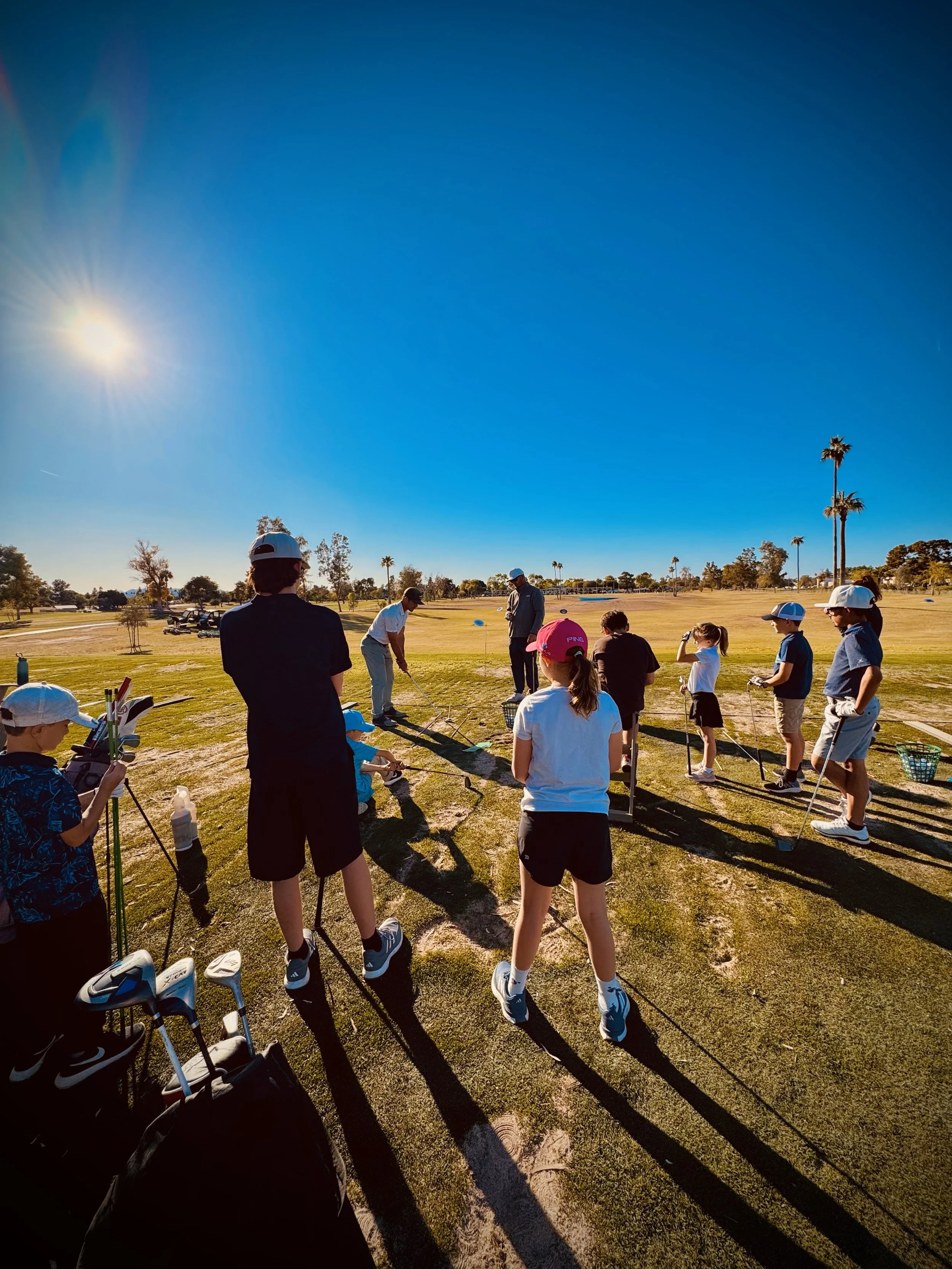This fun class takes place at the private Back Short Game Course at Dobson Ranch Golf Course! Juniors will learn rules/etiquette, parts of the course, club selection, course management, pace of play, and get to play 4 holes from 50 yards away.